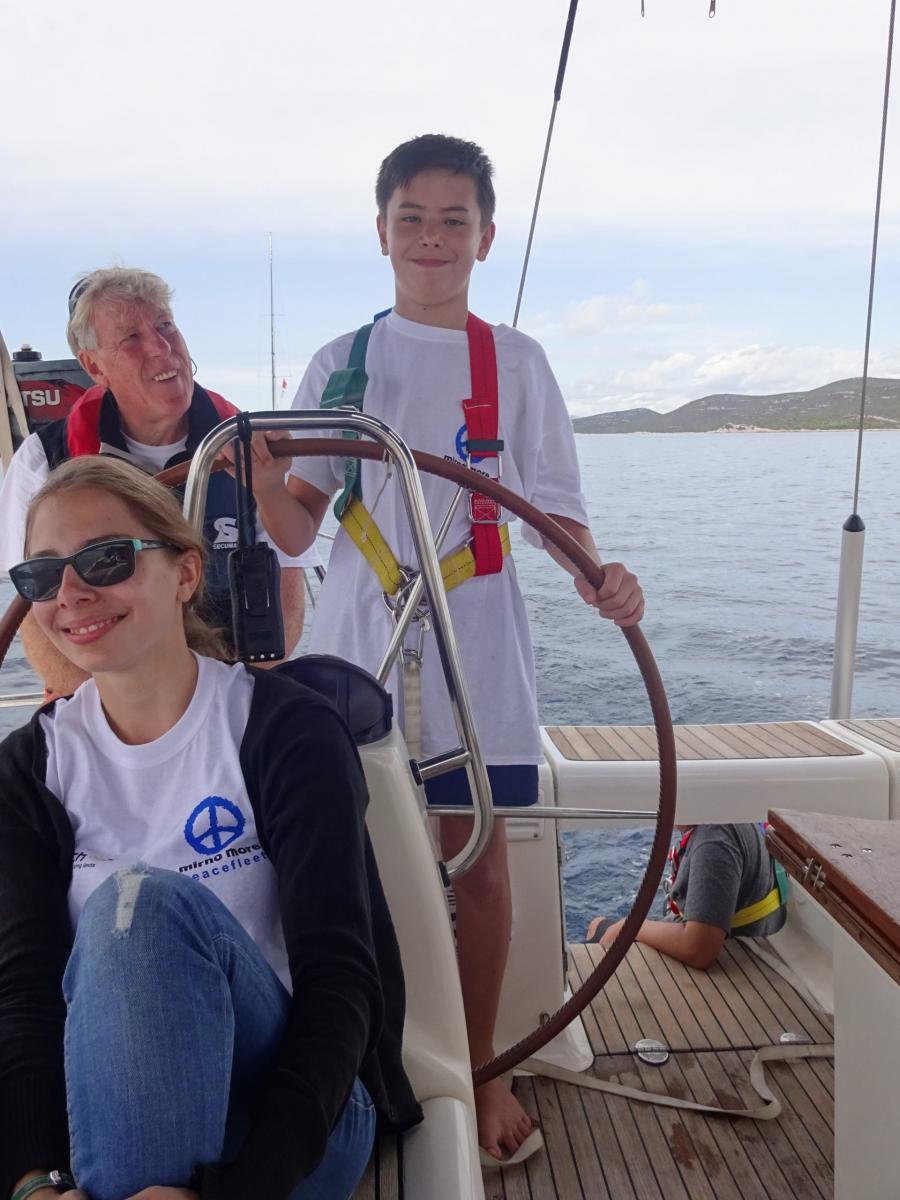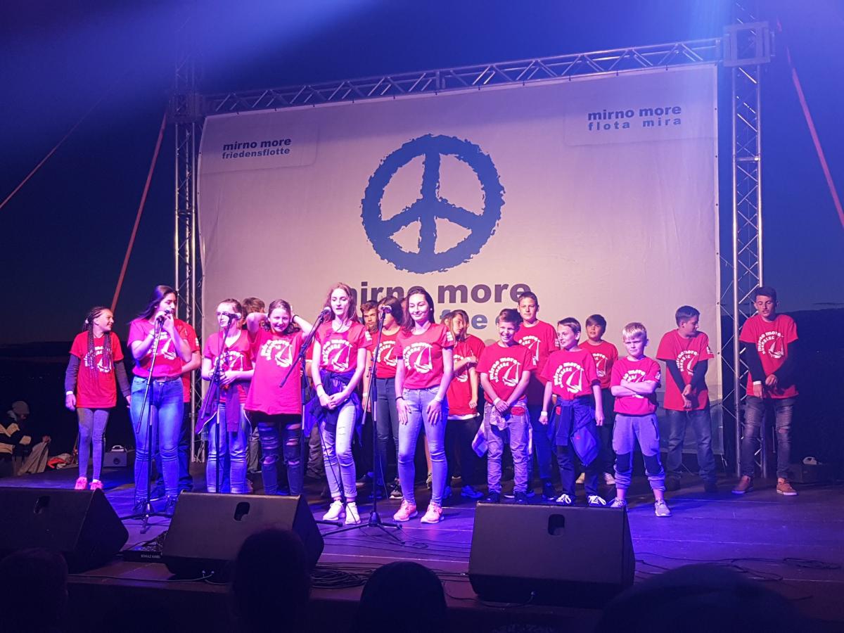 Das Wetter in Kroatien begrüßte uns am Samstag mit stürmischem Wind. Die Schiffsbesatzungen nutzen die Zeit um sich einzurichten und mit allem am Schiff vertraut zu machen. Nach einem heftigen Gewitterschauer konnten die Schiffe am Sonntagmittag Richtung Rogoznica ablegen. Es wurde ein ruhiger Törn zur Eingewöhnung. Am Ziel trafen wir auf viele andere Friedensflotten-Schiffe, denn am Abend war die offizielle Eröffnung der Friedensflotte 2017! Bei der anschließenden Disco wurden schon die ersten Kontakte mit anderen Crews geknüpft!