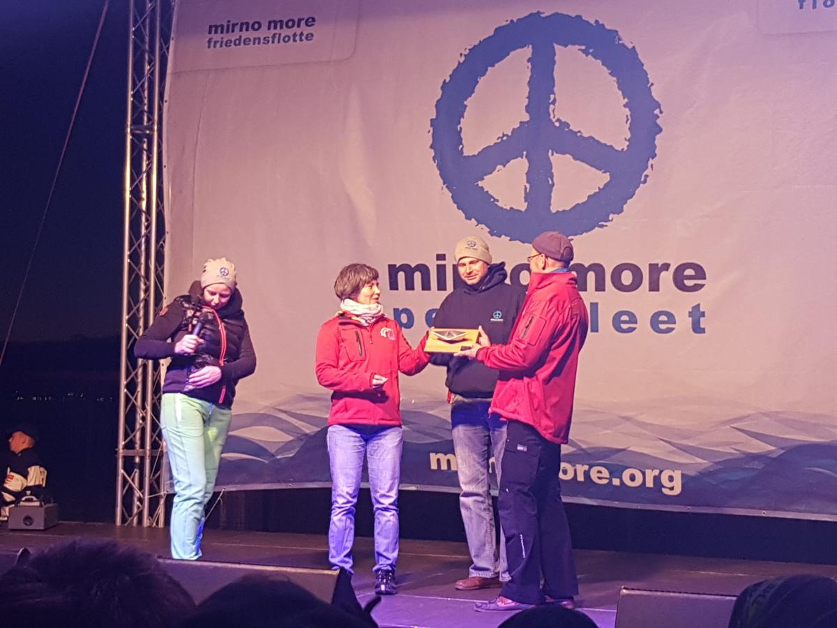 Im Rahmen des Friedensfestes erhielten die Vorsitzende Ilka Soldner und ihr Stellvertreter Thomas Wagner für den Nürnberger Friedensflottenverein vom Träger der Gesamtflotte den Achievement Award als Zeichen für besonderes Engagement für die Friedensflotte.