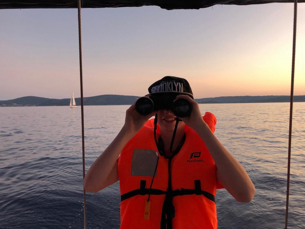 „Gestern haben wir eine Nachtfahrt gemacht. Ich fand das sehr interessant, da das Meer bei Nacht sehr spannend war. Der Sonnenuntergang war sehr scheee. Das Meer in der Bucht war so türkis. Das fand ich echt doll.“ Jan (15)