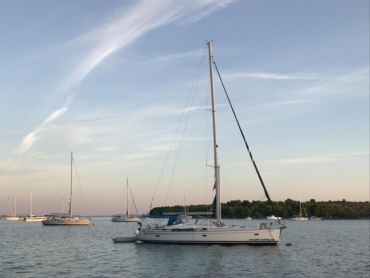 Nach dem Checken der Schiffe und des Wetterberichts, sowie einer ersten Sicherheitseinweisung der Crews, legte die Nürnberger Flotte noch am Nachmittag ab. Nach kurzer Zeit, in der auch schon ein wenig gesegelt wurde, erreichten wir die Ankerbucht bei Kakan. Das erste Anlegemanöver an der Boje war für alle Crews spannend und klappte bei allen gut. Nach dem Abendessen bei Sonnenuntergang an Deck verschwand einer nach dem anderen in der Koje und ließ sich bei leichtem Wellengang in den Schlaf schaukeln.
