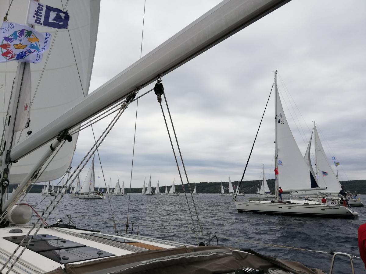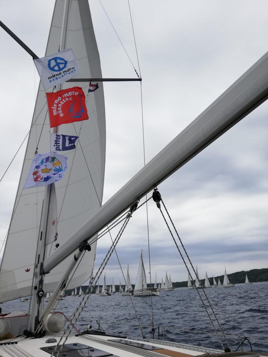 Der zweite Höhepunkt nach dem Friedensfest ist die Formationsfahrt bei der alle 115 Schiffe nacheinander den Hafen verlassen und dann gemeinsam durch die Bucht fahren. Alle Crews setzen gemeinsam die Segel für Frieden und Toleranz, hissen ihre selbstgemalte Friedensfahne und segeln aus der Bucht auf das offene Meer. Gänsehaut-Feeling!