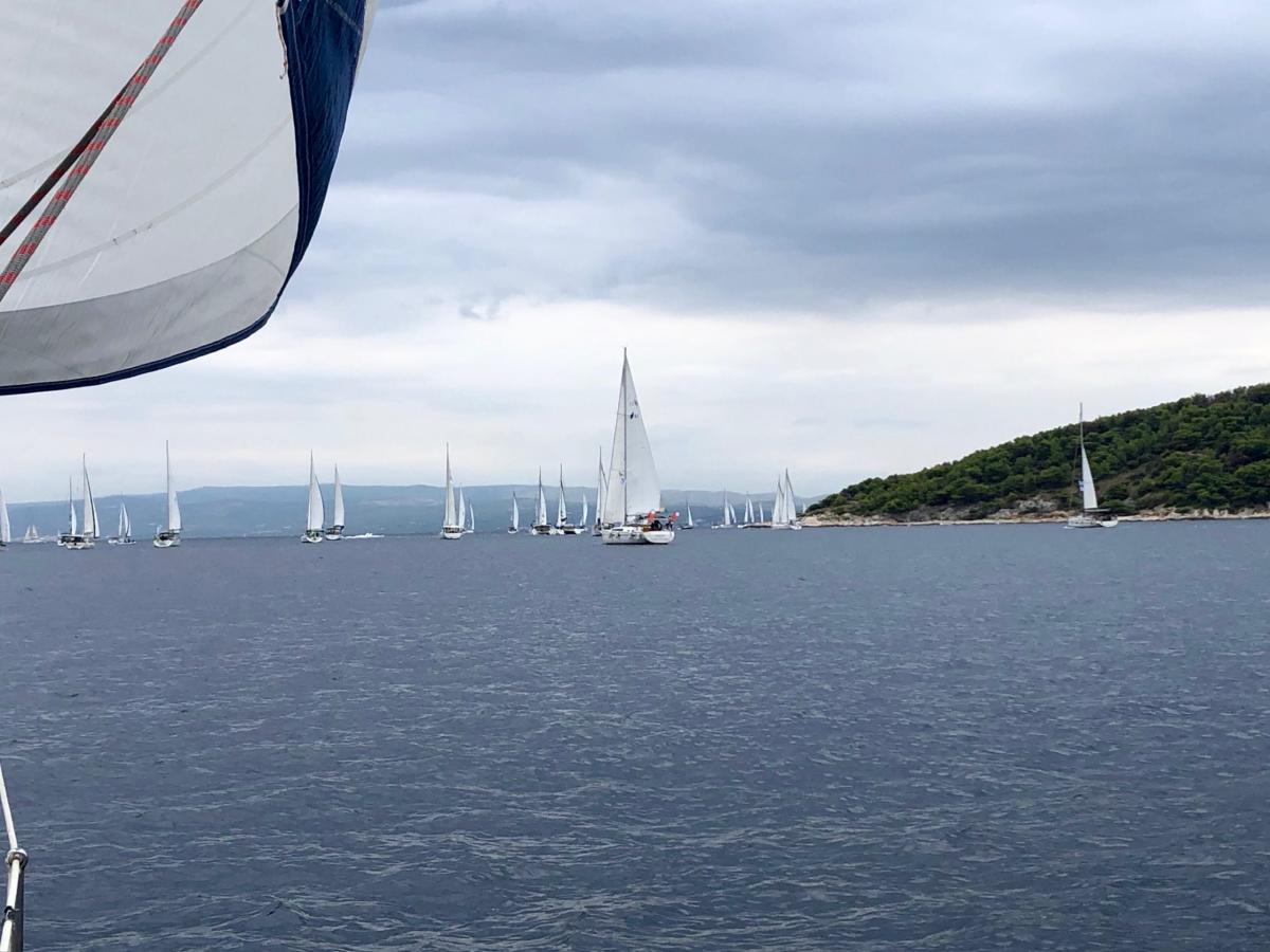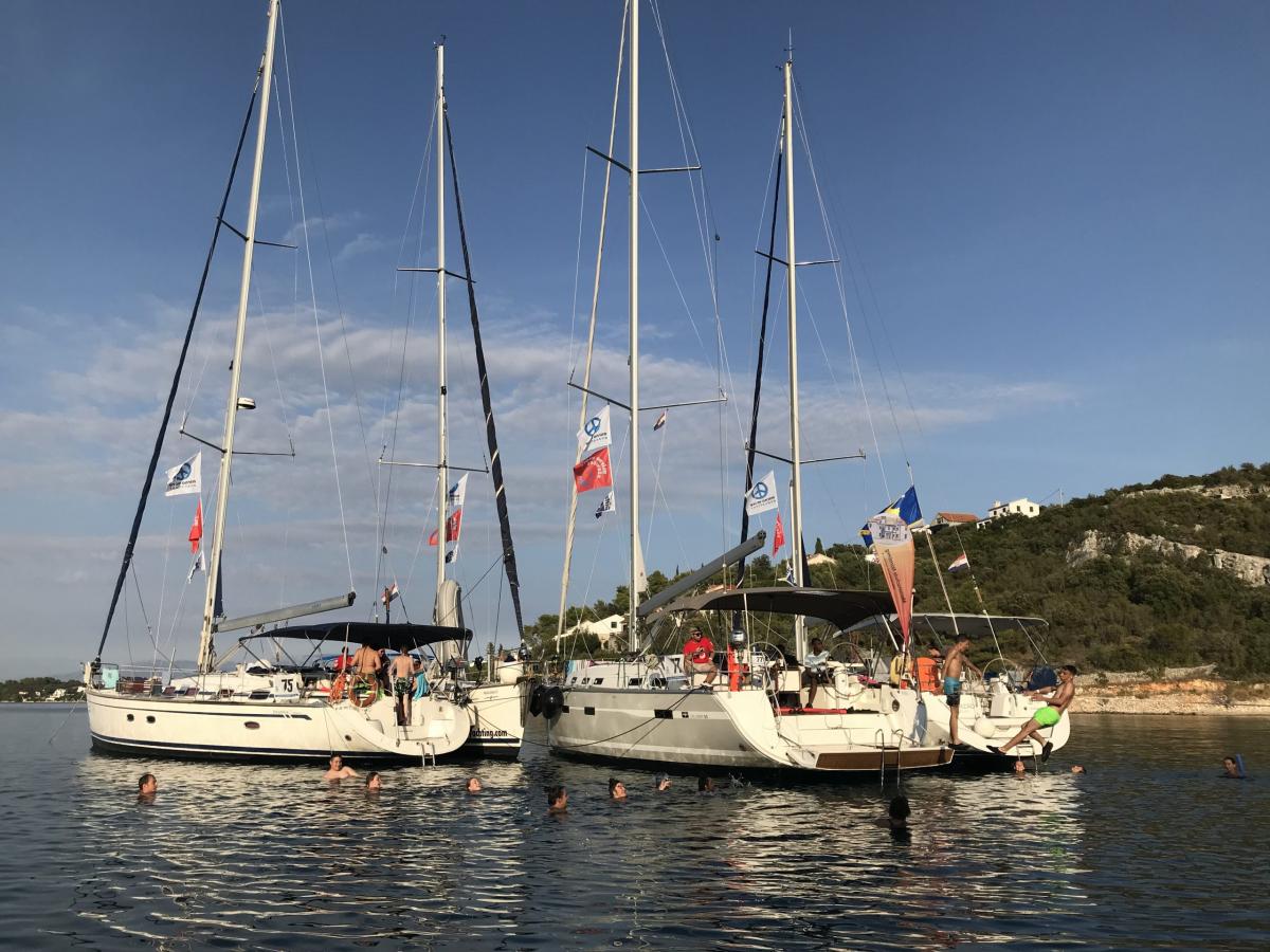 Nach einer ruhigen Nacht vor Boje sind wir am Sonntag von Kakan Richtung Rogoznica gesegelt, um dort viele weitere Schiffe der Flotte zur Eröffnungsveranstaltung zu treffen. Unterwegs beim Badestopp hat die Marjana 1 beim Ankerversuch Bekanntschaft mit Seegras gemacht. Nach dem Baden segelten wir alle Richtung Rogoznica, wo am Abend die Eröffnungsfeier der Friedensflotte war. Dort trafen wir auf viele andere Crews der Friedensflotte. Und danach – Disco!
